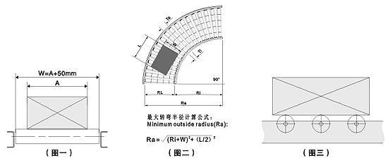 ·在有轉彎輥道時應考慮轉彎的半徑,以保證物料的順利輸送。(圖二)