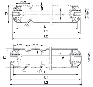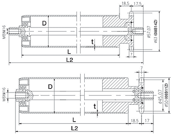 輥筒直徑D 軸徑d 壁厚t 長度L 長度L1 筒體材料 表面處理
