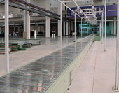 鋼制鏈板輸送機適用于形狀不很規則物體的輸送。在兩條同鏈條上用板狀構件連接使輸送方向形成連續的平板,由于該輸送機具有運行平穩的特點,與其他輸送機配合使用可實現轉角輸送,載重能力最大能達到數十噸。